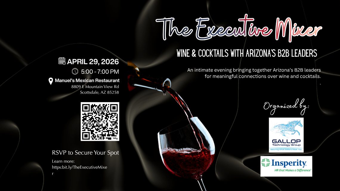 Join a curated circle of Arizona’s B2B leaders for an intimate evening of relaxed conversation, meaningful connections, with wine and cocktails. This gathering is designed for senior decision‑makers who value real conversations, shared insights, and relationships that extend beyond the room.
